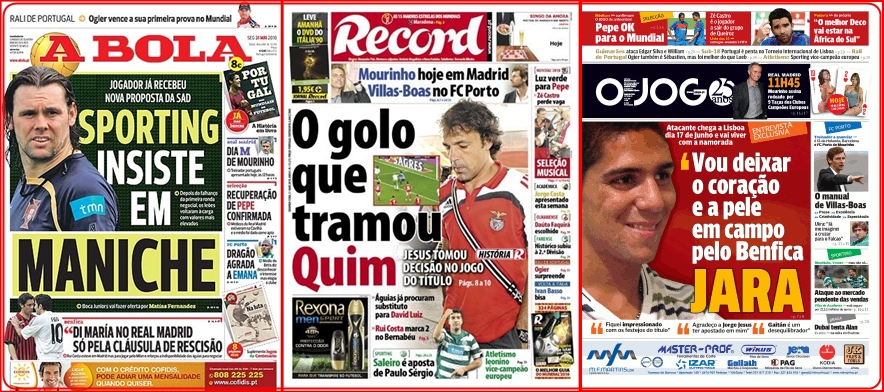 O caso de extremo argentino é um sucesso absoluto e tem múltiplos factores a seu favor: para além da notável época que realizou, é indiscutível na selecção de Maradona, tem 22 anos e características… que se pagam a peso de ouro. Por isso, o valor da cláusula de saída de Di María está dentro dos parâmetros que actualmente regem o mercado de transferências. Tem como destino mais provável o Real Madrid e até já recebeu uma discreta bênção de José Mourinho: “Se me disserem que podemos contratá-lo a um preço acessível, digo já para arriscarem. Mas se o preço for exorbitante, então digo que não”. Ora, se Mourinho entender, realmente, que os 40 milhões exigidos por Vieira constituem uma exorbitância, não será por isso que o Benfica deixará de vender o jogador. Há interessados em Inglaterra (e até mesmo outros em Espanha…) capazes de assegurar esse negócio, que será o maior de sempre a envolver um clube português.