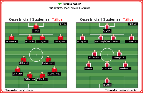 Defesas: Maxi Pereira, Luisão, Miguel Vítor, Capdevila e Luís Martins;