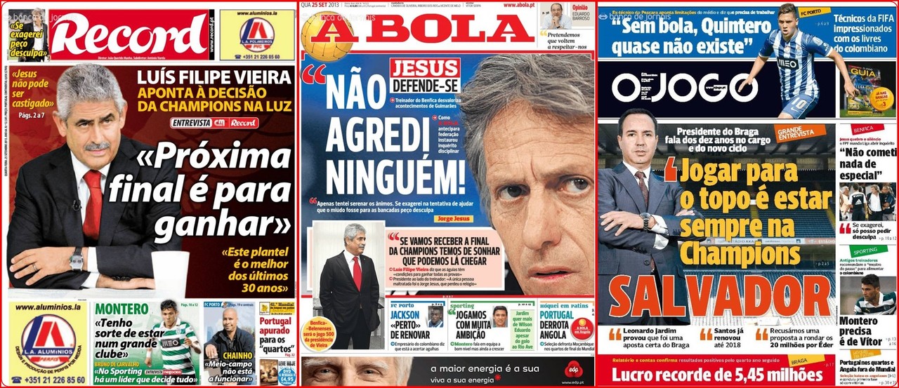 Questionado sobre se espera a despenalização de Jesus: «Há uma justiça no Norte e outra no Sul. Sabemos qual é a postura das pessoas que estão no futebol e que há muito folclore na televisão à volta do Benfica. O que espero que aconteça? O mesmo que se passou com o Apito Dourado. Estão a tentar sacrificar o Jorge quando ontem se passou coisas noutro estádio e não se falou de nada.»