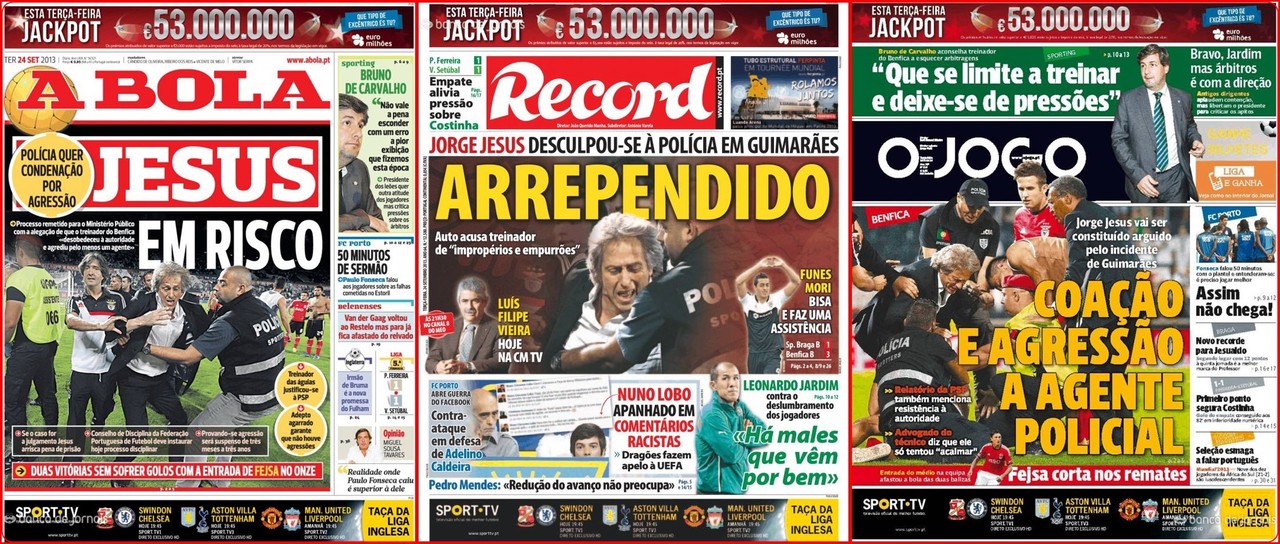 «Na nossa ótica, não pode haver castigo porque Jorge Jesus não fez nada. Quem conhece Jesus, sabe que ele não agrediu ninguém», disse em entrevista à CM tv, afirmando que não equacionada a hipótese de ficar três meses sem treinador: «Era muito mau para o futebol se Jesus fosse castigado. Outro treinador qualquer tinha entrado no balneário e deixado a situação aquecer. (...) Ele foi pedir desculpa aos agentes da polícia, não foi ninguém esmurrado ou maltratado. Estão a fazer desta situação um bicho-de-sete-cabeças.»