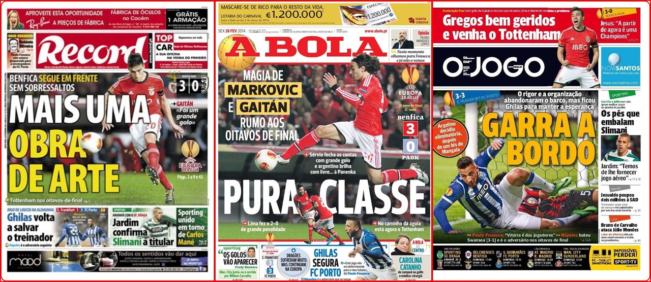 Os contornos de goleada pairavam pela Luz quando aos 79 minutos,Markovic fez o 3-0. Os minutos seguintes não trouxeram mais do que a confirmação da vitória europeia.